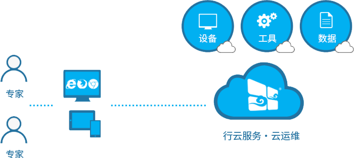 云运维的产品设计思路是:将需要管理的IT设备、运维过程中需要用到的工具与数据放到云上,任何专家都可以通过一个浏览器,或者手机、平板等智能终端,就可以随时随地的访问位于云中的设备、工具与数据,并可协同工作,安全可控合规。